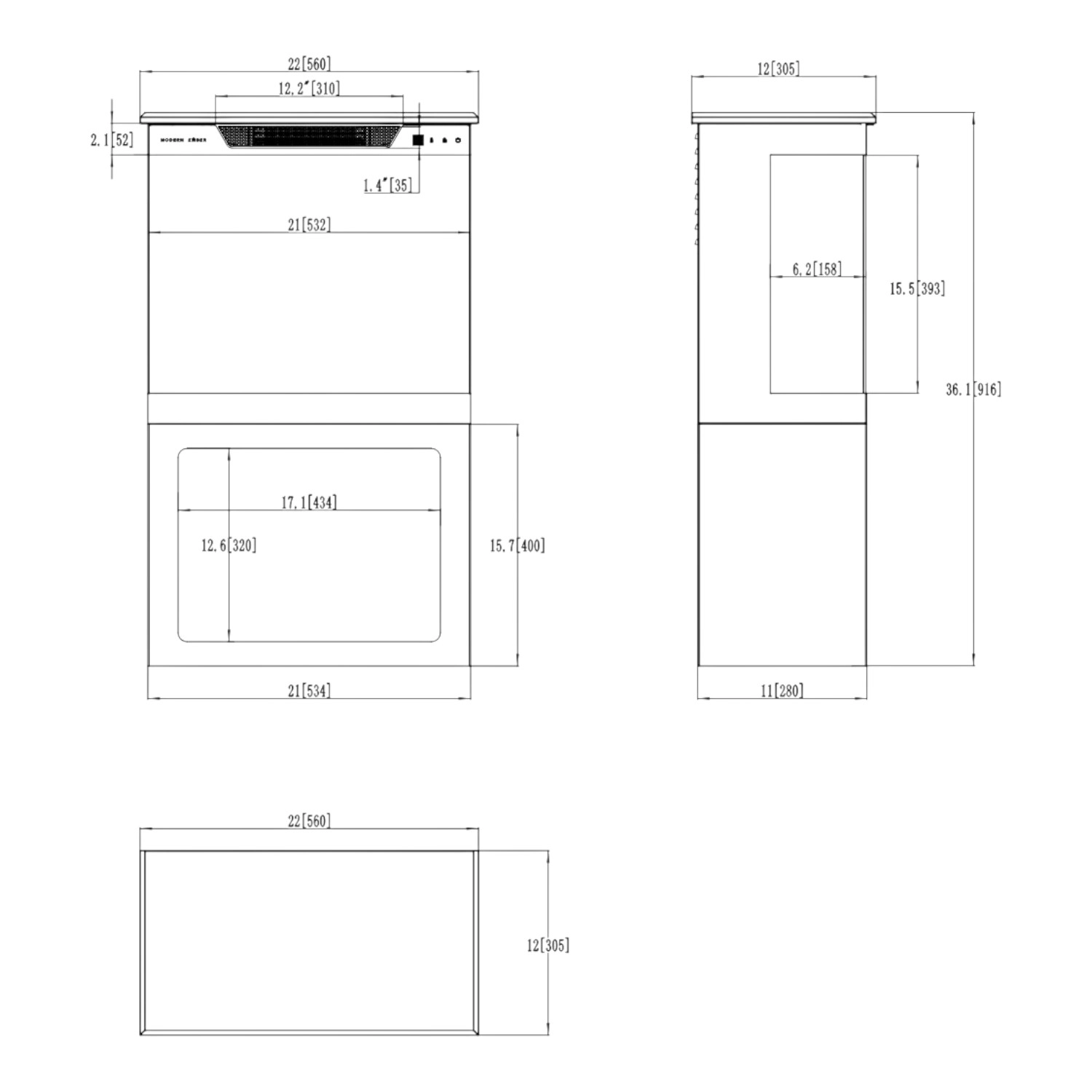 - Dimensioni: 56 × 91.6 × 30.5 cm (22" × 36" × 12")