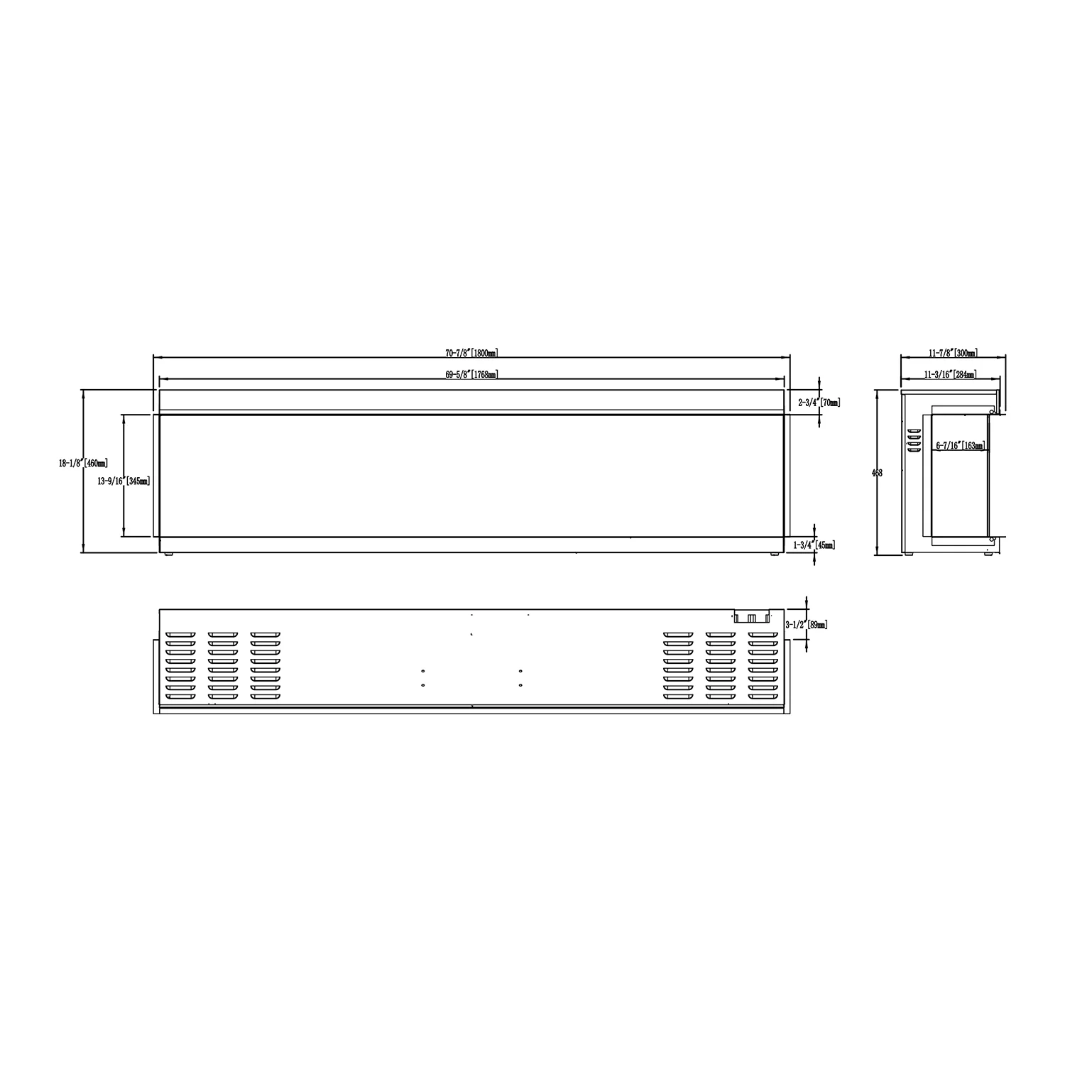Camino elettrico da incasso trifacciale