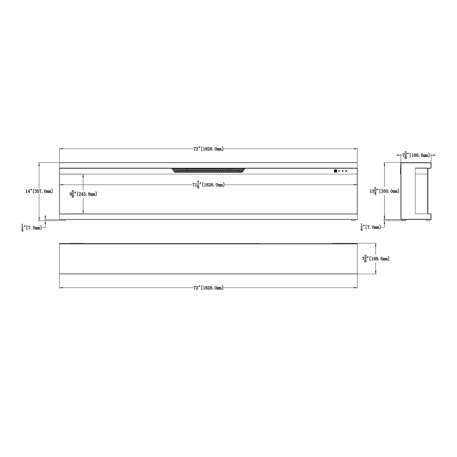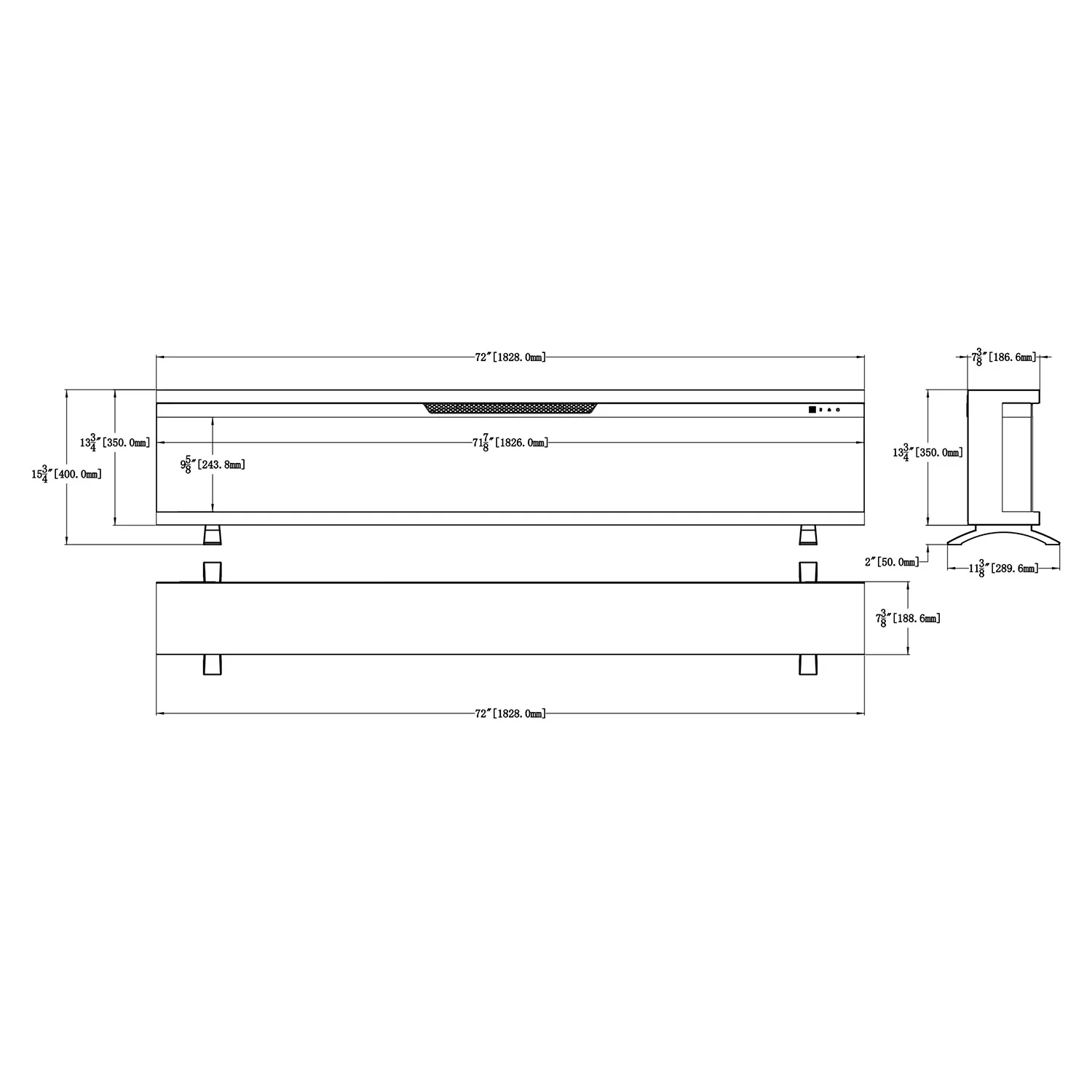 Camino elettrico da incasso trifacciale