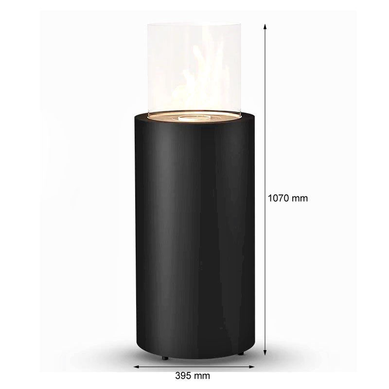 Questo caminetto a bioetanolo prolungherà le serate estive. Grazie al cilindro di vetro attorno al fuoco è possibile ammirare le fiamme da ogni lato. Questo elegante caminetto è perfetto sia per ambienti privati che commerciali. La finitura nera crea davvero un look moderno.