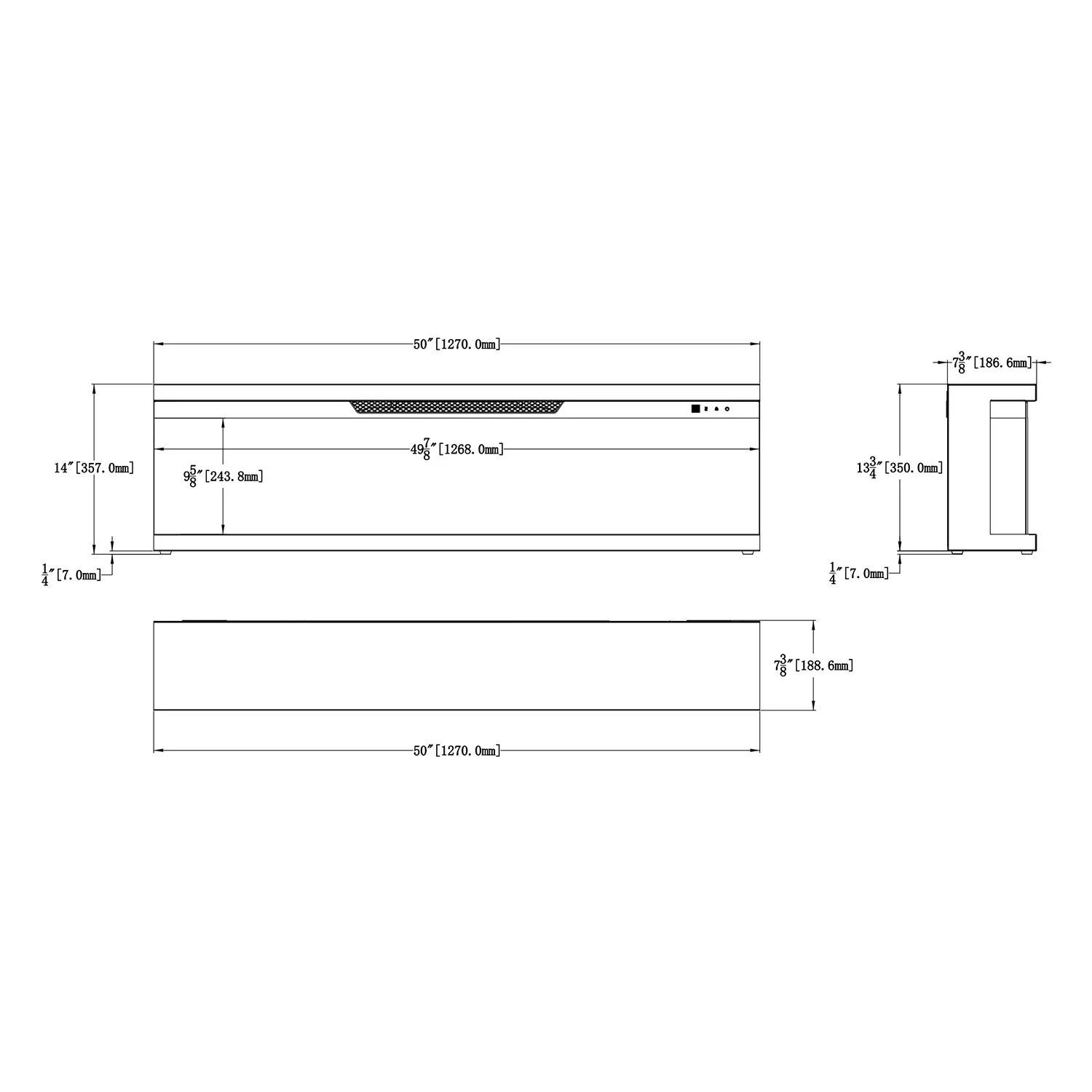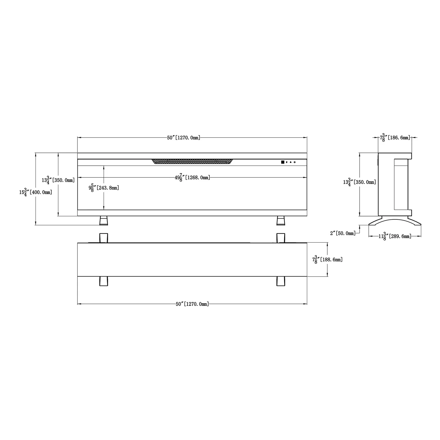 Camino elettrico da incasso trifacciale